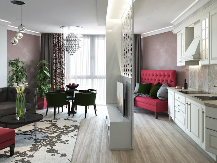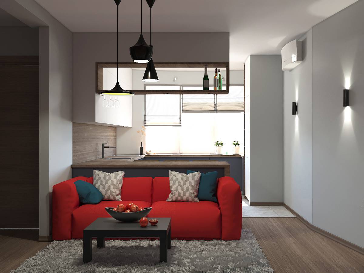 - для функциональности - зонирование пространства разными формами освещения: светодиодная подсветка, встроенные светильники, световые линии, использование мебели -трансформеров