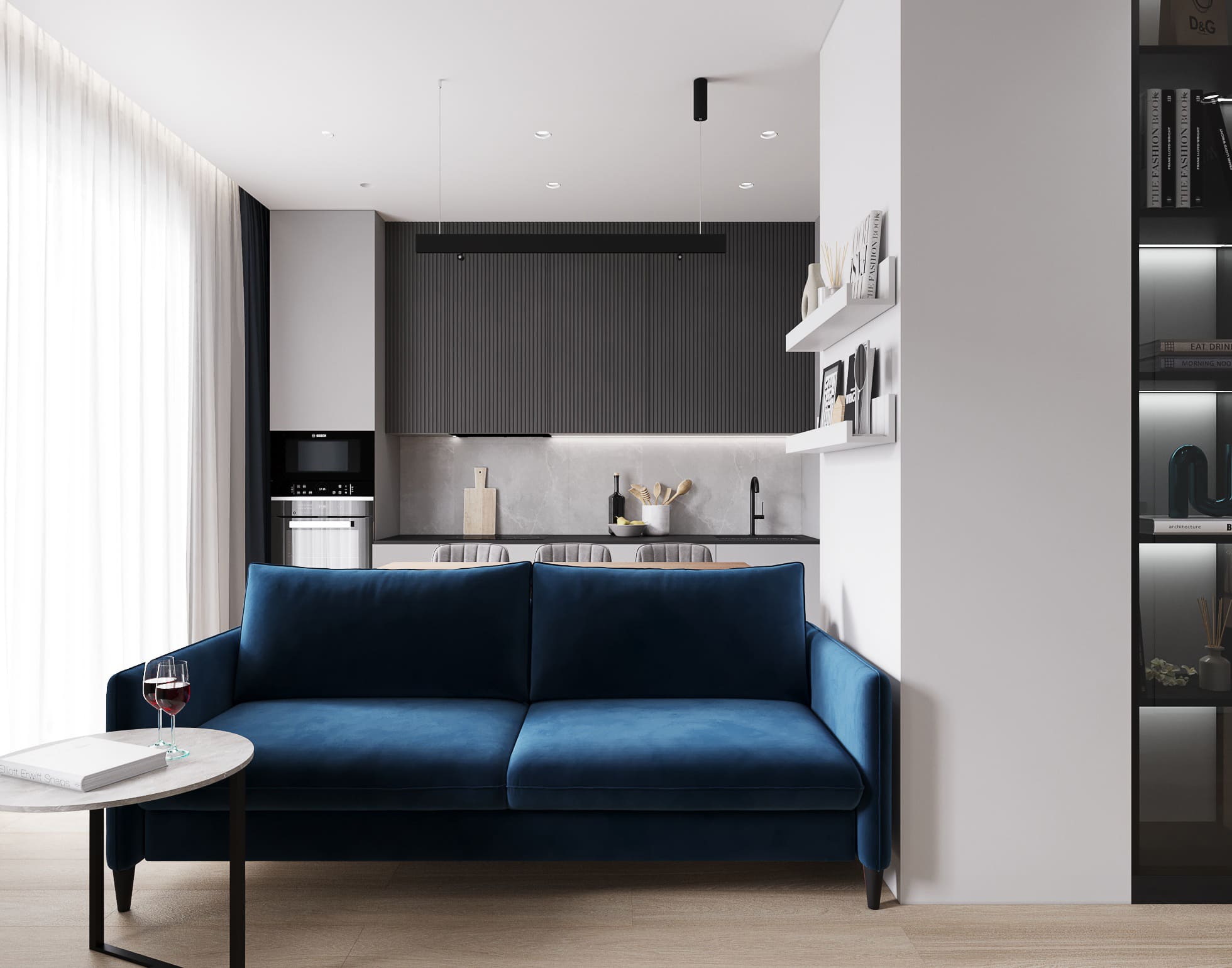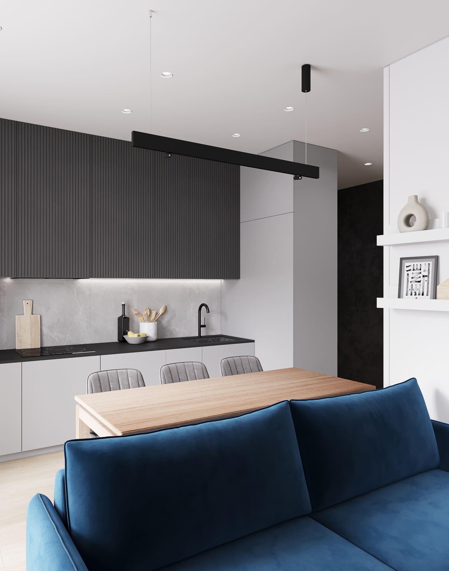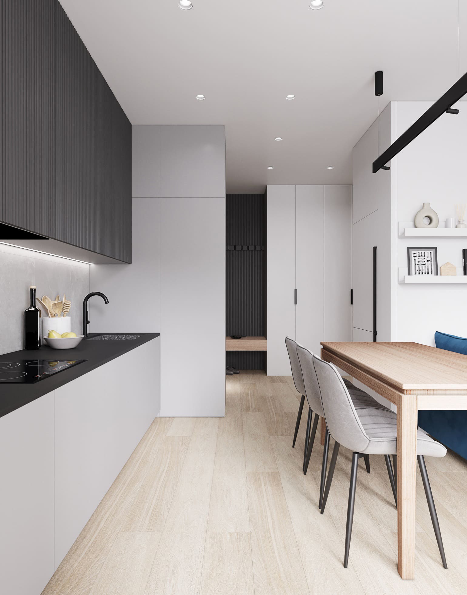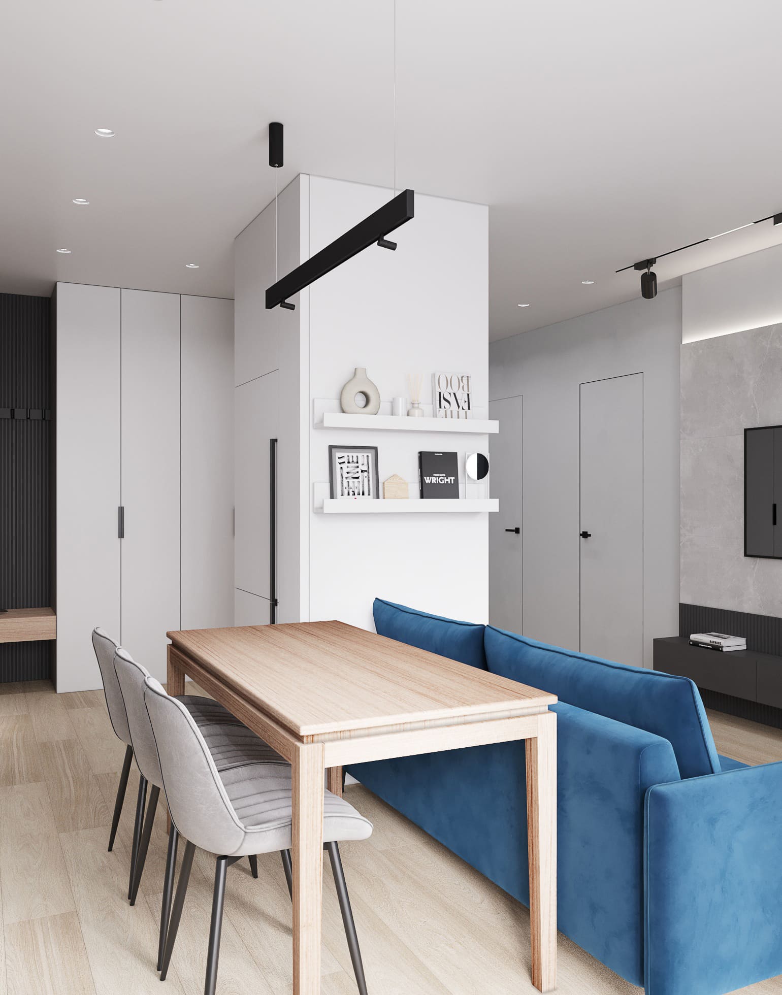 Современный и комфортный интерьер с продуманной планировкой. Использованы премиальные материалы, встроенные системы хранения и удобные зоны для отдыха и работы всей семьи.