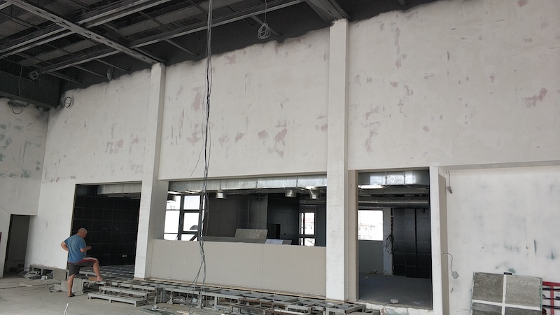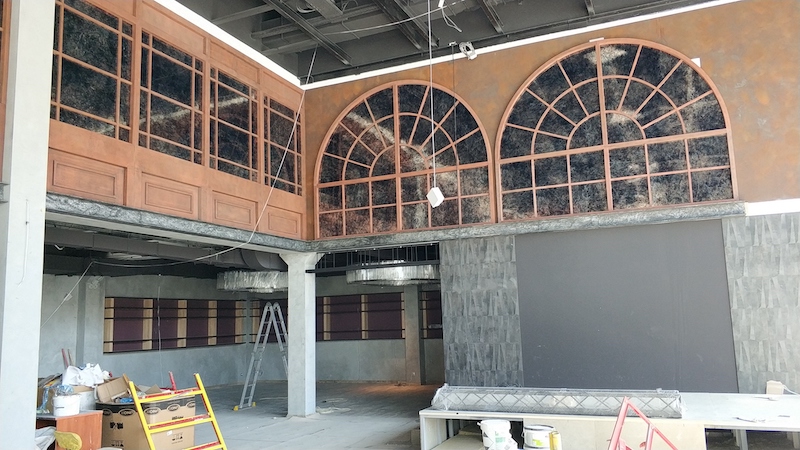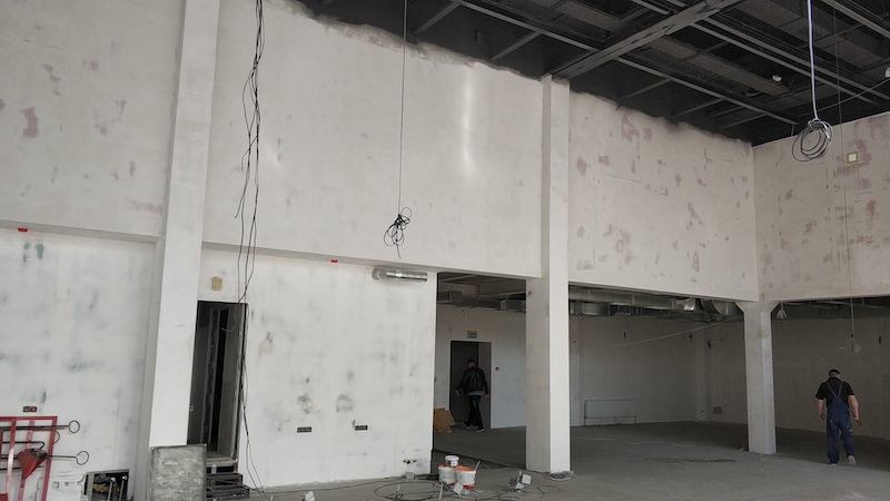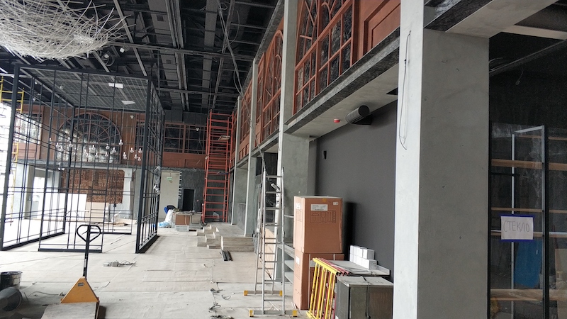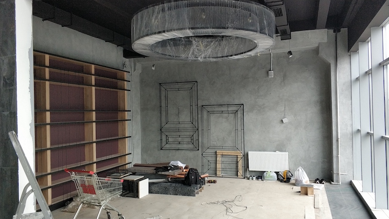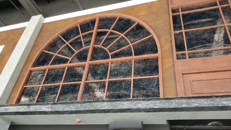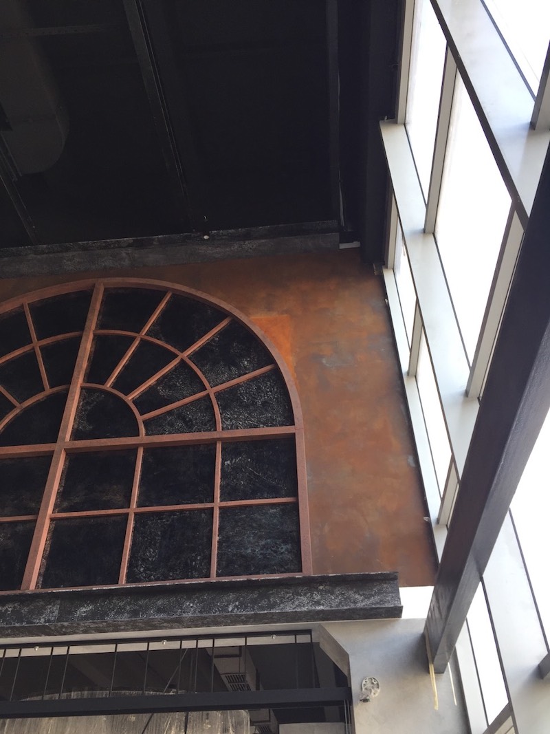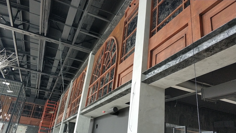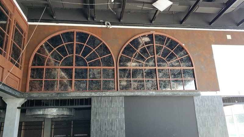 Примечательно то, что мы не рисовали ржавчину красками, как это делают многие, и не использовали настоящие металлические листы, которые обладают большой стоимостью, весом и сложным процессом монтажа, что привело бы к удорожанию проекта и переносу сроков его ввода в эксплуатацию, а соблюдение сроков всегда является сложным моментом при ремонте коммерческих объектов, где задействовано много подрядчиков.