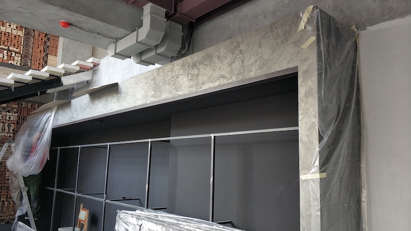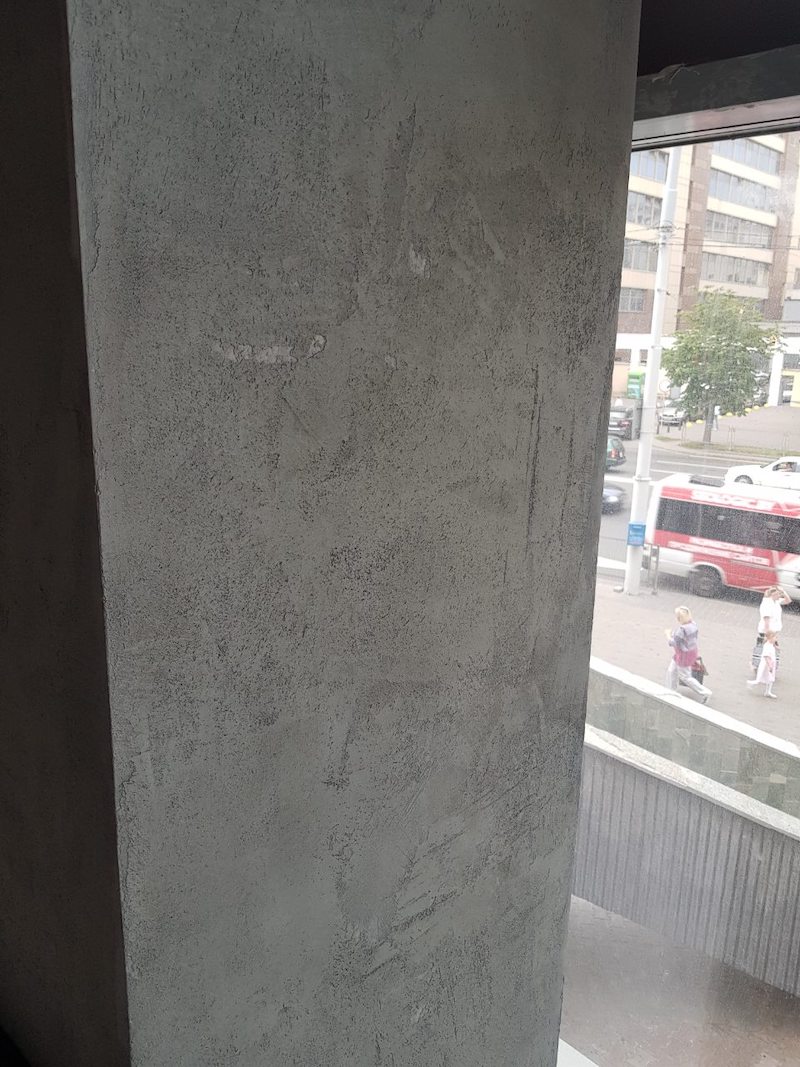 - Декоративная штукатурка стен ресторана «под бетон» и эффект ржавчины