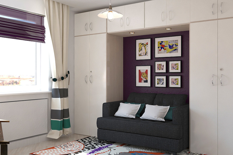Интерьер получился креативным, функциональным и настраивающим на активный образ жизни.