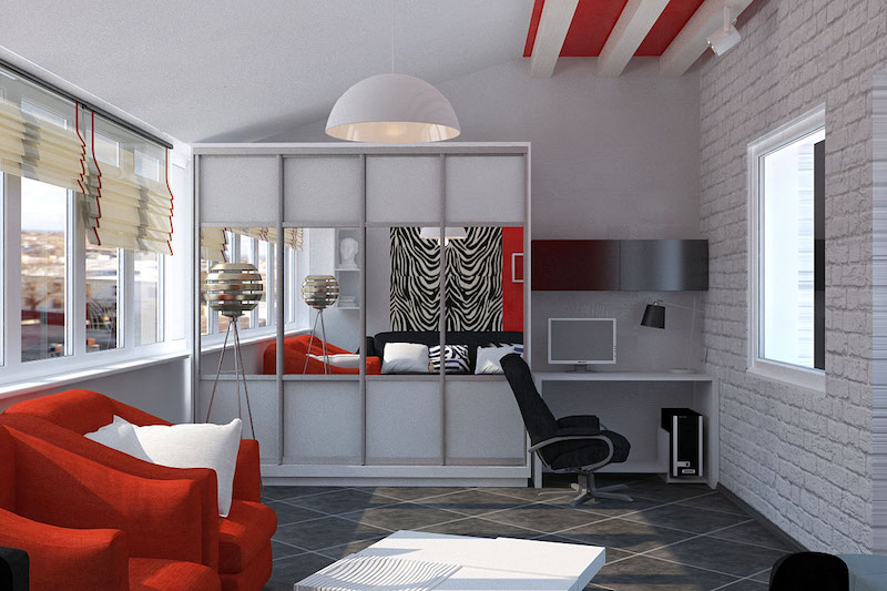 Обращает на себя внимание просторная лоджия, обустроенная в полноценную комнату для работы и отдыха. Дизайн интерьера 3 комнатной квартиры позволил соединить удобство, энергию и позитив.