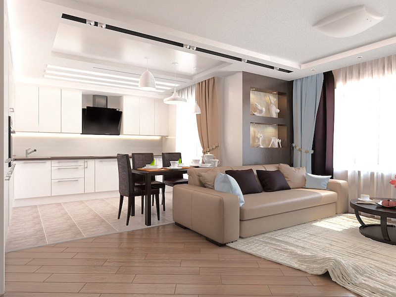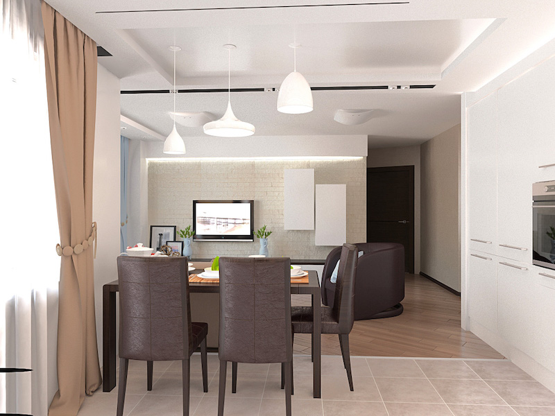 Дизайн проект 3х- комнатной квартиры в современном стиле с элементами багхауза для проживания семьи с 2 детьми. Цветовая гамма – белый, черный, все оттенки коричневого, акценты - голубой. В оформлении детской применены розовый, синий.