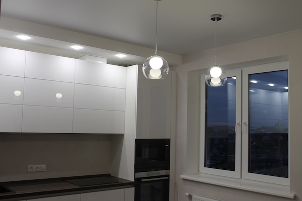 - Монтаж натяжного потолка на остальном пространстве.