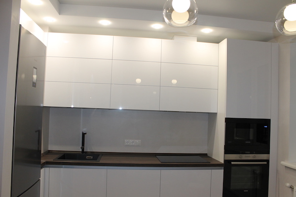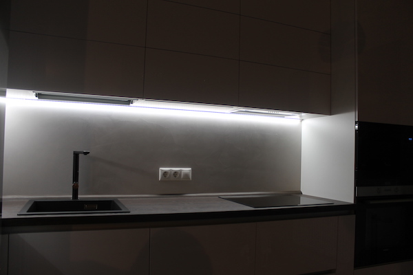 - На потолке был выполнен монтаж и чистовая покраска декоративного короба из гипсокартона, в котором была спрятана вентиляция.